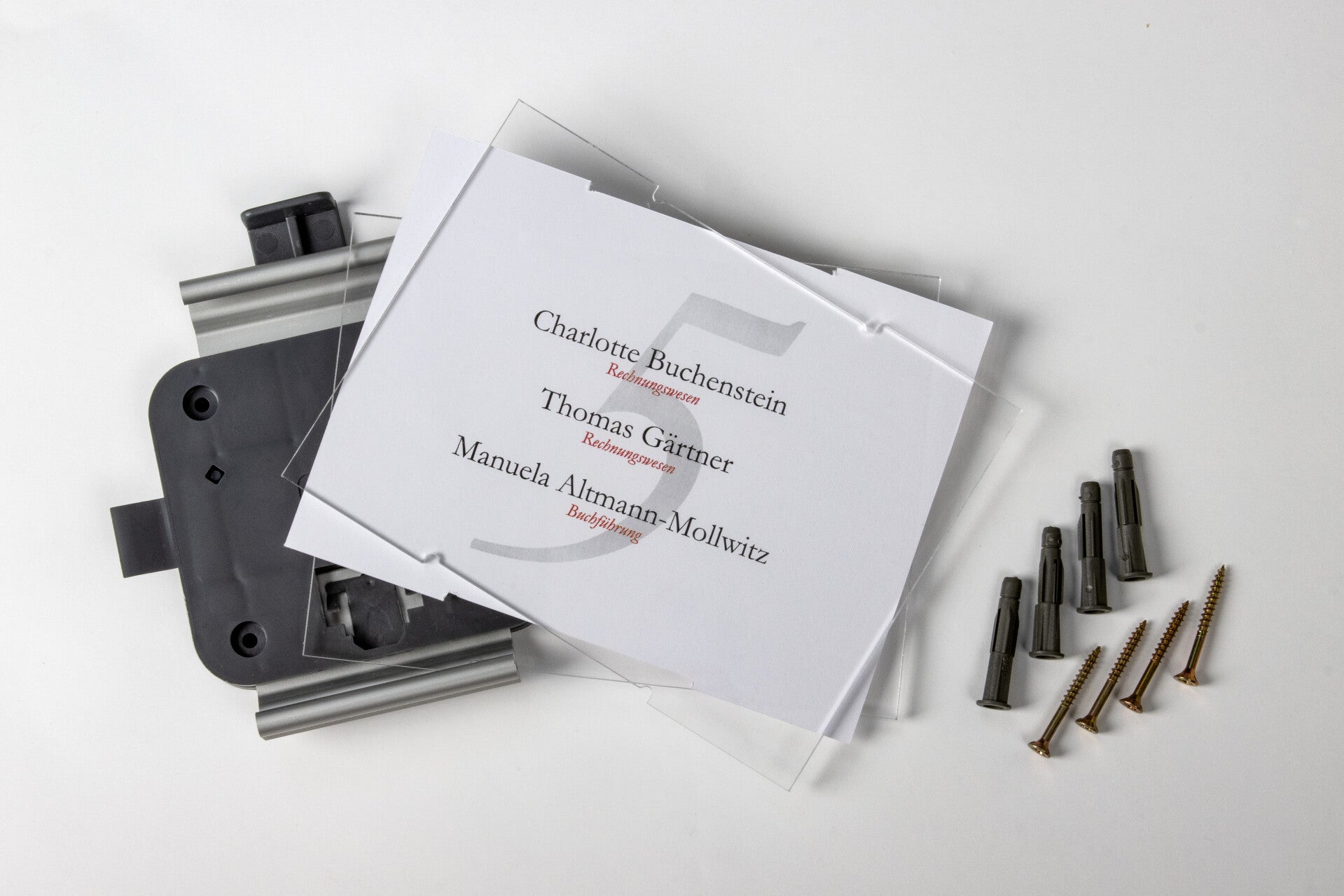 Die Schilder bestehen aus zwei diamantpolierten Acrylglasscheiben, zwischen die Kartons mit dem gewünschten Text, den Bildern und Grafiken eingelegt werden, Das Schöne daran: Die mitgelieferten Kartons können Sie leicht selbst mit jedem PC gestalten. Zum Lieferumfang gehören: